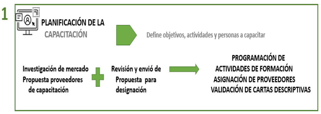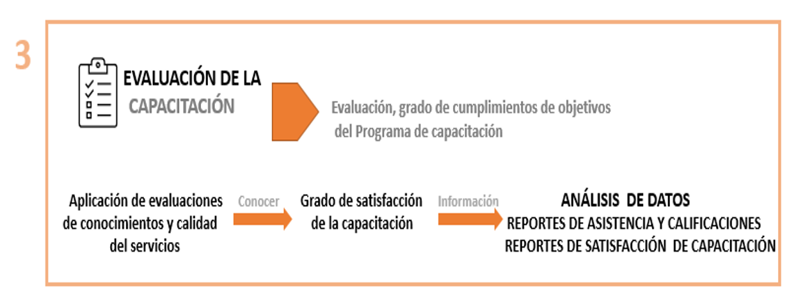 Operamos tú Programa de Capacitación Anual, desde establecer contacto con los proveedores de servicios profesionales, hasta el monitoreo de los cursos en modalidad presencial y virtual, siguiendo estos tres pasos: